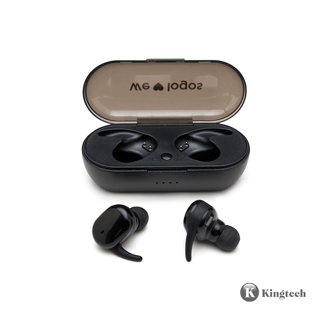Auriculares inalámbricos con estuche de carga y micrófono incorporado. Posee tecnología bluetooth 5.0. Capacidad del auricular es de 55mAh y su capacidad de carga es de 300mAh. Cuenta con cobertura bluetooth en una distancia de 10 metros y su duración en funcionamiento es de 3 horas seguidas. Mantiene la carga sin uso por 120 horas y el tiempo de carga es de 50 minutos. Funciones touch: un toque para pausar/reproducir música, dos toques para redial. Medidas: 8 x 3,5 cm. Kingtech. LOGO24: Producto disponible para el servicio de logueo en 24 horas respetando unidades mínimas de logueo y 50 unidades máximas. Consultar términos y condiciones del servicio