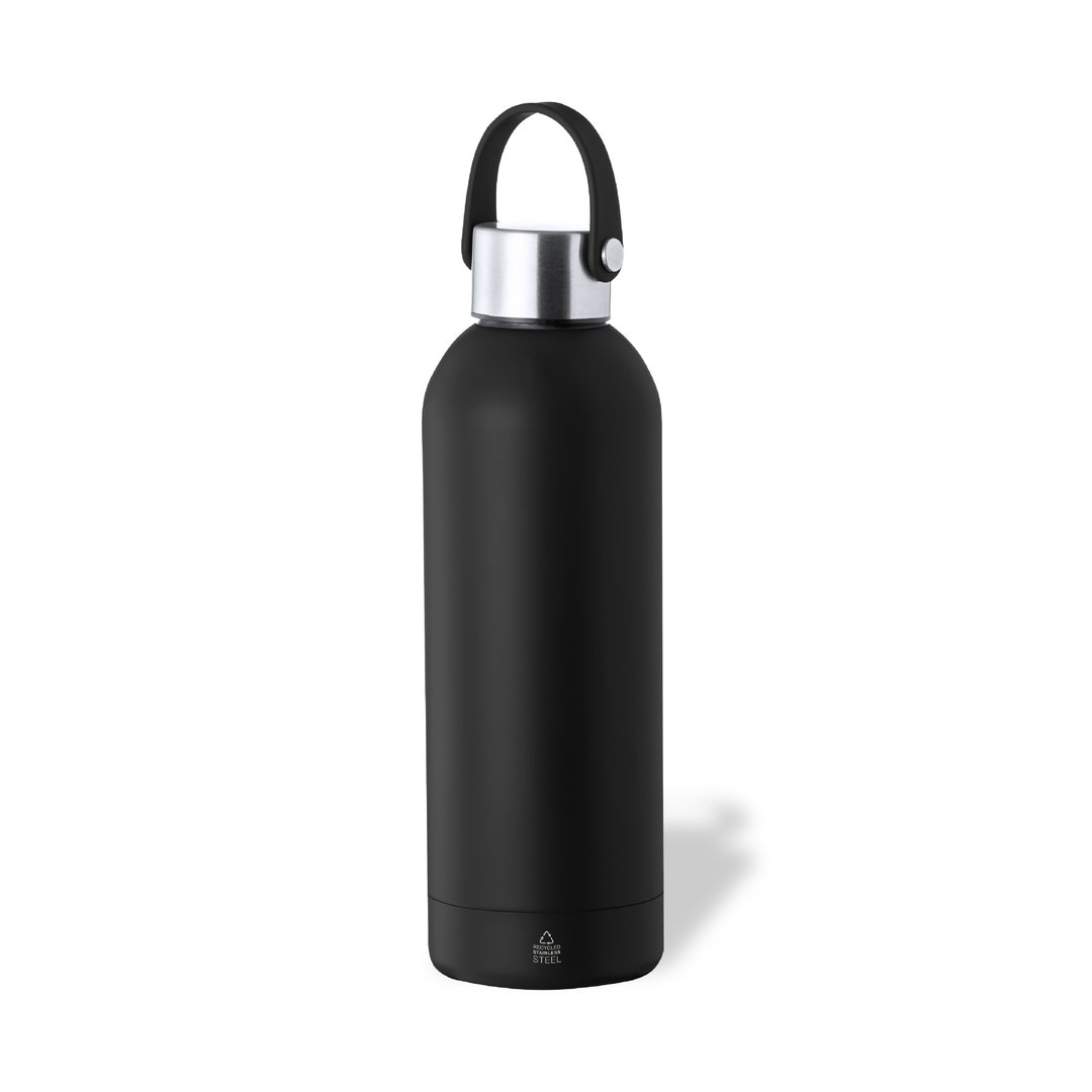 Bidón térmico de 500 ml de capacidad, fabricado en acero inox reciclado de doble pared, con tapón a rosca en mate y asa integrada a juego. Disponible en variada gama de colores satinados, libre de BPA y presentado en caja individual de diseño kraft. El acero es uno de los materiales más demandados y que puede encontrarse casi en todas partes, desde productos de uso diario a grandes construcciones. Con innumerables propiedades, entre las que cabe destacar la durabilidad y su alto grado de reutilización, convirtiéndolo en una alternativa muy valorada en soluciones de sostenibilidad. Debidamente tratado, permite obtener nuevos recursos de infinita utilización. 500 ml