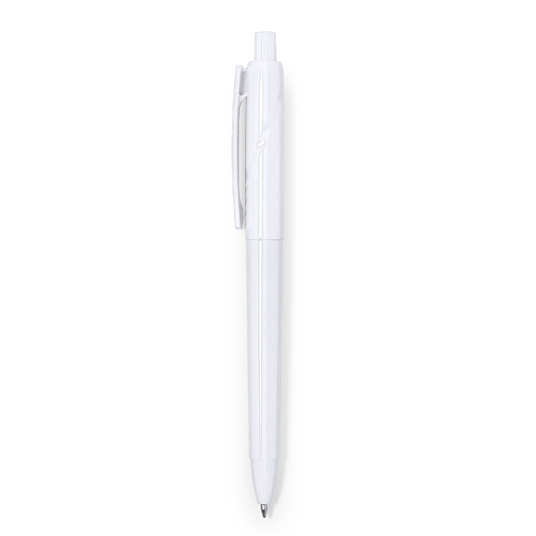 Bolígrafo fabricado en RPET. Clip con amplia zona de marcaje, de mecanismo pulsador y en tinta azul. Distintivo RPET en la parte superior del bolígrafo. Elaborado a partir de plástico reciclado, para así fomentar la reutilización de residuos plásticos y ayudar a la sostenibilidad del planeta.