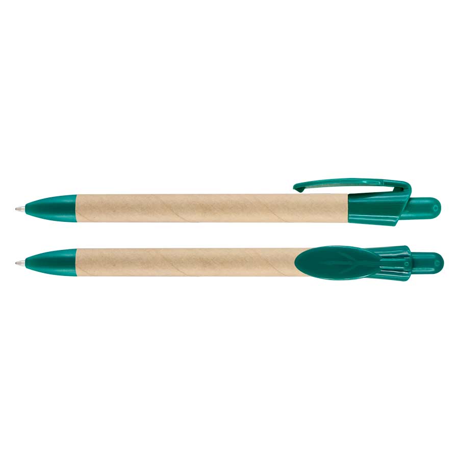 Bolígrafo ecológico “Hoja” con cuerpo de cartón reciclado y terminales de plástico PET biodegradable. Escritura azul.