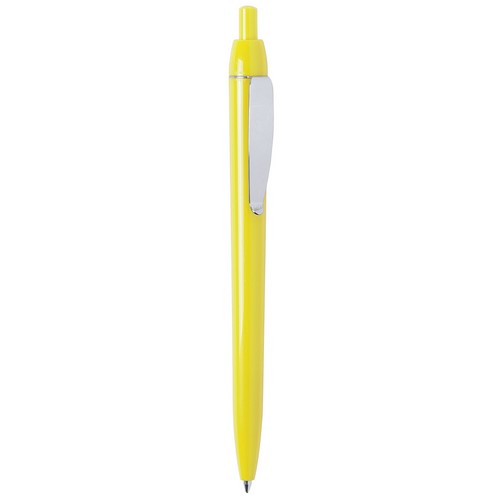 Bolígrafo Glamour de Carioca, con mecanismo pulsador y suave cuerpo acabado en variada gama de vivos colores. Con Clip metálico y tinta azul.