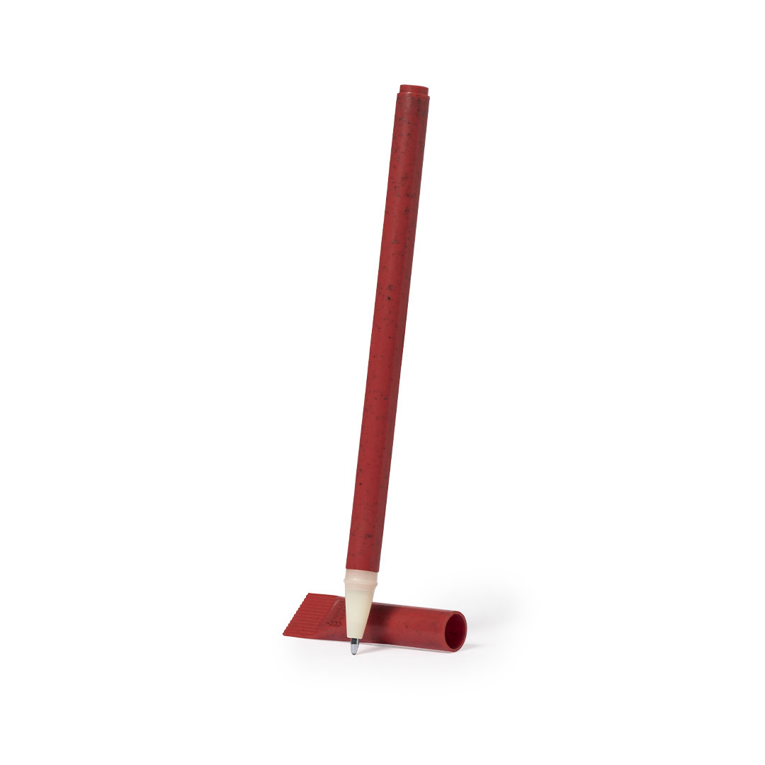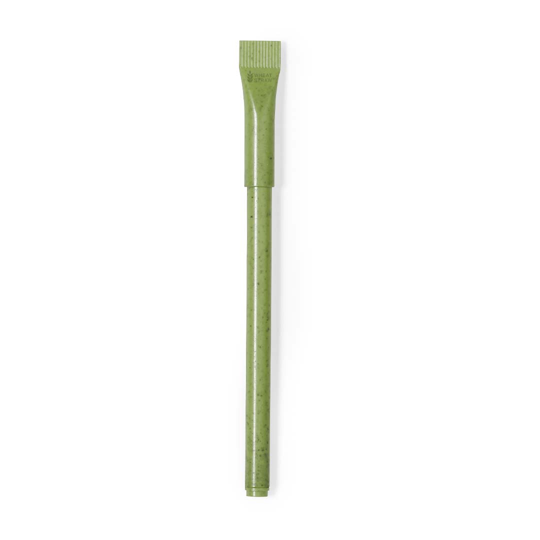 Bolígrafo con original capucha a juego y fabricado en caña de trigo y resistente ABS. Con tinta azul y disponible en variada gama de colores. Distintivo Wheat Straw en la capucha. La caña de trigo fomenta la utilización de materias primas naturales, reduciendo así las emisiones contaminantes.