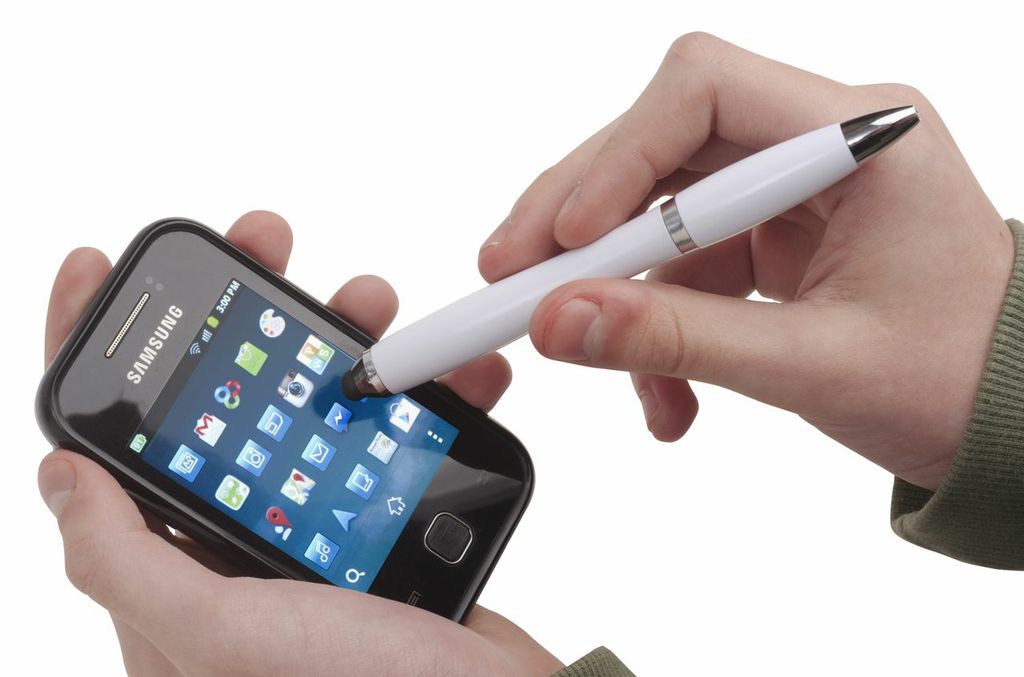 Ø 0,5 x 13,5 cm. Bolígrafo plástico giratorio con detalles metálicos. Clip metálico. Puntero para pantallas táctiles. Tinta negra.