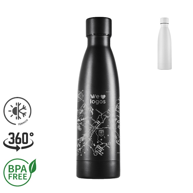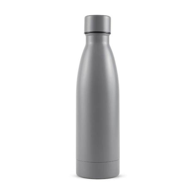 Botella reutilizable de doble pared de acero inoxidable, esmaltado en su exterior con Powder Coating. Es ideal para mantener la temperatura de la bebida: mantiene 4 horas la bebida caliente y 8 horas la bebida fría. Su tapa está confeccionada en PP, acero inoxidable y silicona para evitar derrames de líquido. Producto libre de BPA. Reutilizable. Medidas: 25.5 cm x diámetro 6.8 cm. Capacidad: 500 ml. Incluye Gift Box confeccionada en cartulina Kraft.