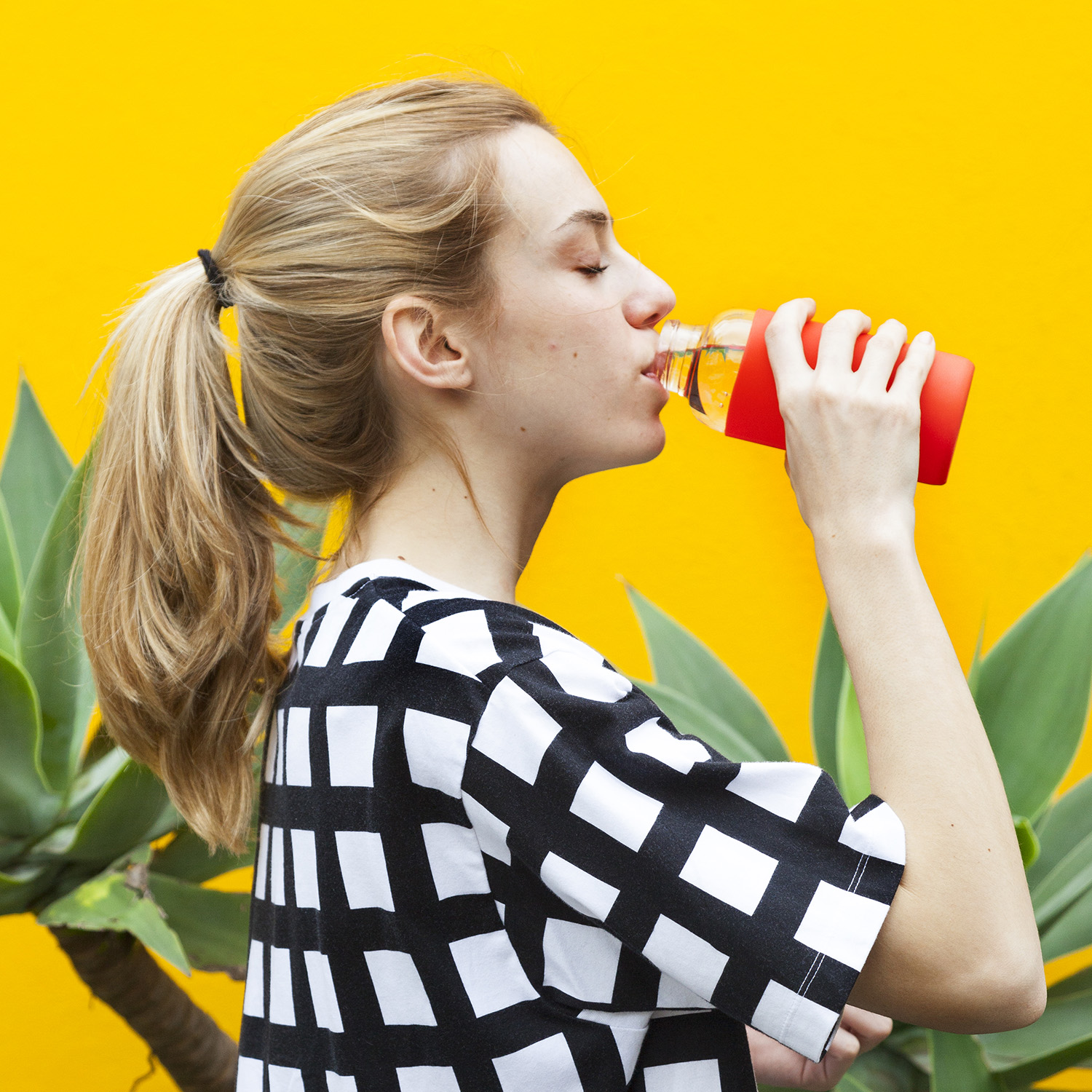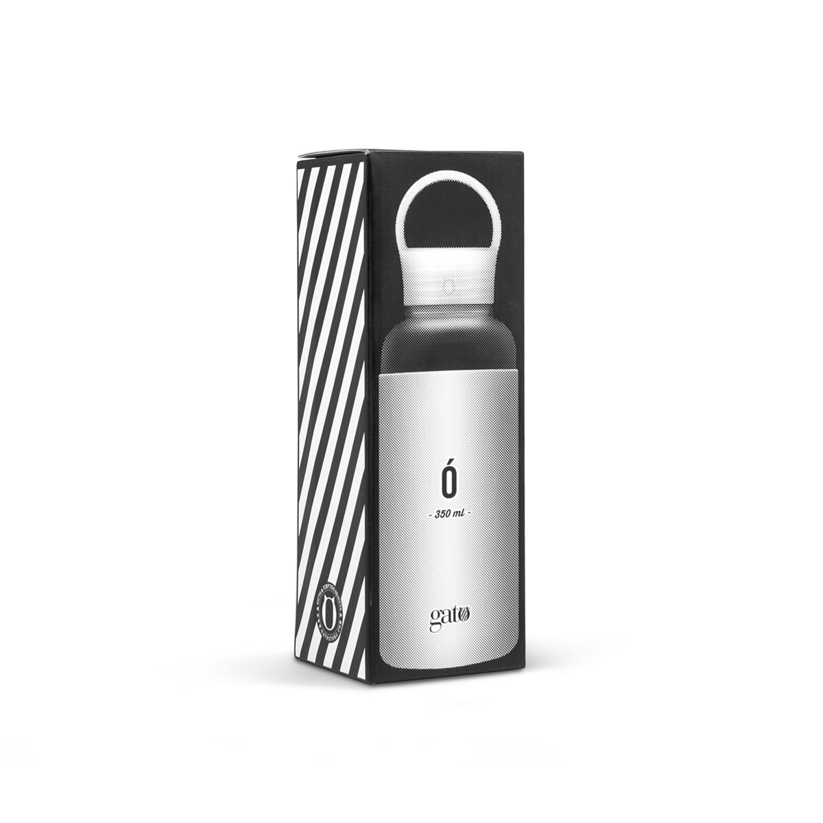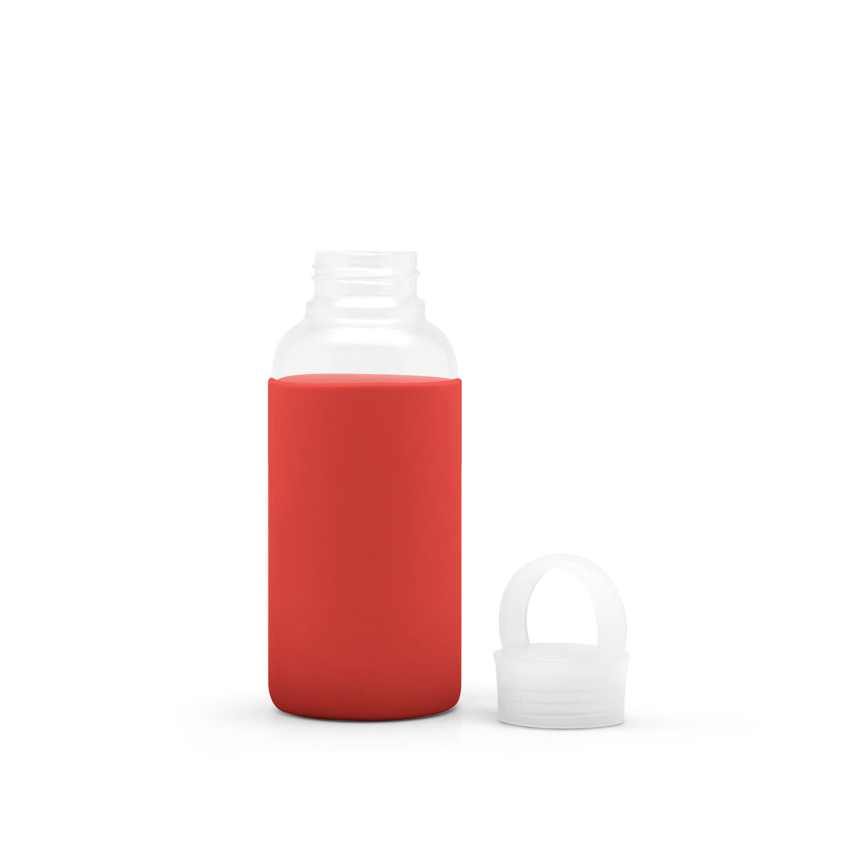 Ø 6,5 x 20 cm. Capacidad 350 ml. Vidrio de borosilicato. Botella práctica y reutilizable. Posee manga de silicona antideslizante en varios colores y pico ancho. Tapa a rosca, antiderrame y con manija de agarre. Presentación en caja de regalo.