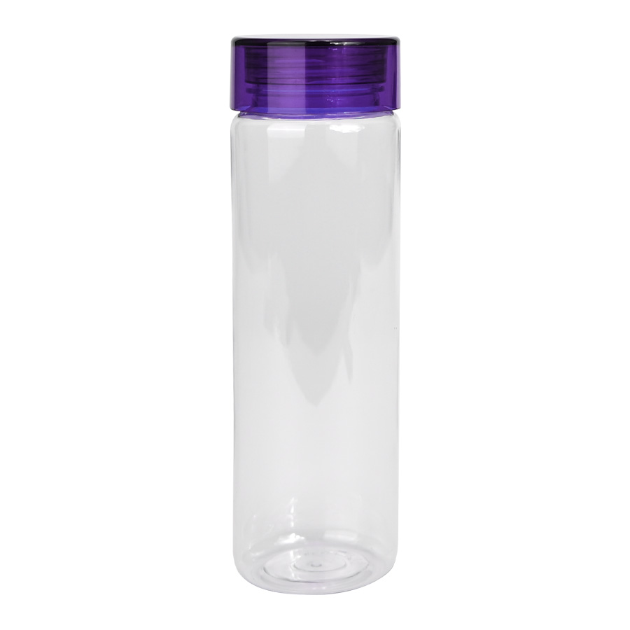 Botella plástica PET translúcido, con tapa redonda twist-off PET de color, modelo “LOUIS”. Producto BPA FREE, para el contacto con líquidos y alimentos. Capacidad 600ml. Presentación en bolsa OPP + caja de regalo de cartón kraft.