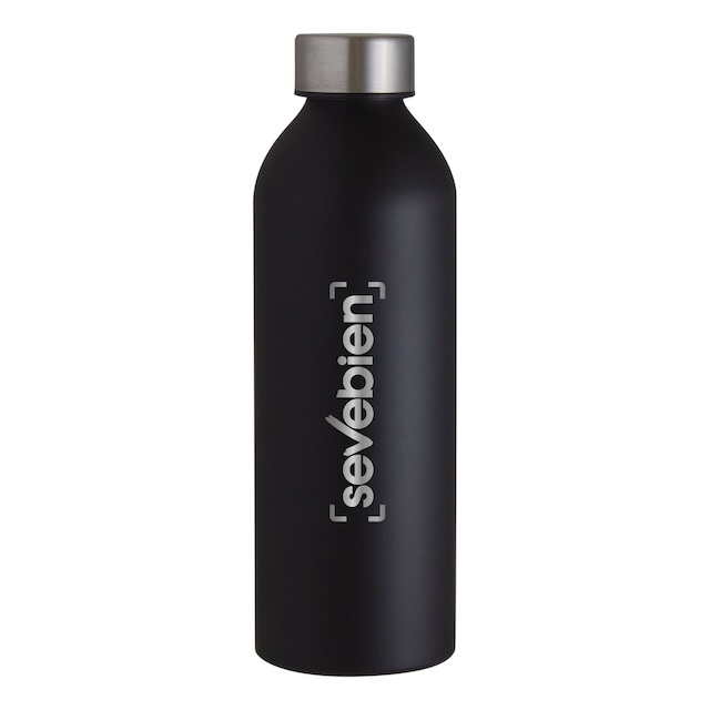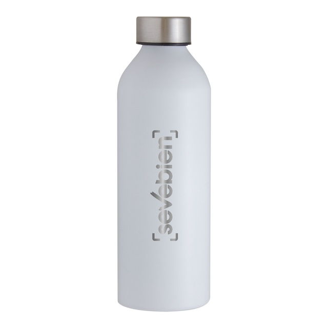 Ø 7,2 x 22,5 cm. Capacidad 750 ml. Aluminio. Botella de aluminio con acabado mate. Tapa a rosca color plata en acero inoxidable 201 y anillo de silicona antiderrame.