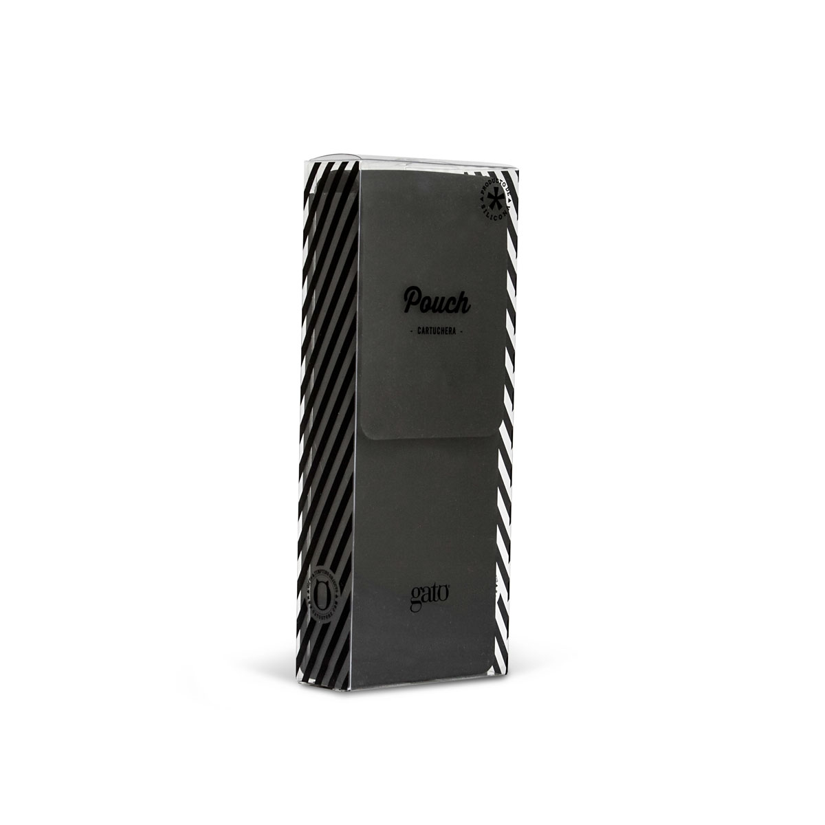 7,5 x 18,5 x 2,7 cm. Silicona. Cartuchera de silicona extra suave. Tiene una solapa imantada y es muy canchera para llevarla a todos lados. Presentación en caja de regalo.