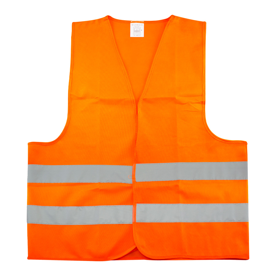 Chaleco Reflectante de Seguridad modelo “Basic”, 100% tela poliéster 100 g/m2 fluorescente con bandas reflectantes color plateado de 5 cm. de ancho. Incluye cierre velcro. Cumple con norma vigente de Ley del Tránsito y norma legal EN 471.