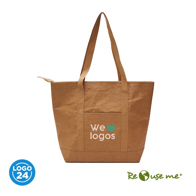 Cooler con formato tipo cartera. Realizado en papel kraft, con interior termico de PEVA. Medidas: 30,5 x 12 x 34 cm. Capacidad: 12L. Reuseme. LOGO24: Producto disponible para el servicio de logueo en 24 horas respetando unidades mínimas de logueo y 200 unidades máximas. Consultar términos y condiciones del servicio.