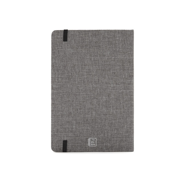 Cuaderno con tapa de tela 300D en dos tonos. . Hojas internas de 70 gramos, con 80 hojas en formato rayado. El producto viene en una bolsa de PLA 100% compostable. Dimensiones: 14 x 21 x 1,4 cm. Daily Book.