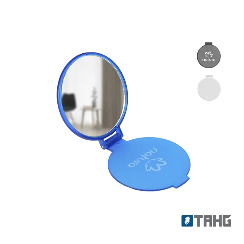 Mini espejo de bolsillo. Con tapa plegable Diámetro 6,3 cm.