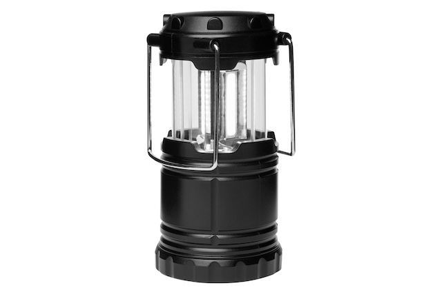 Ø 6 x 9,5 cm (cerrado) Ø 6 x 13,5 cm (abierto). Plástico. Farol de luz led con dos agarraderas metálicas. Al desplegarse hacia arriba se enciende la luz. Funciona con 3 baterías AAA (no incluidas) Presentación en caja de regalo.