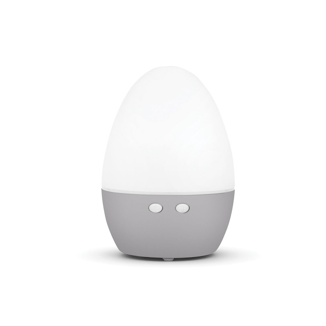 Ø 10,5 x 15 cm. Plástico + Polipropileno. Luz cálida (2 intensidades) y modo fade continuo entre luz tenue y luz fuerte. Difusor de aroma. Eggy tiene una luz tenue y emite un fresco vapor con el aroma de tu esencia favorita. Un placer para los sentidos. Presentación en caja de regalo.