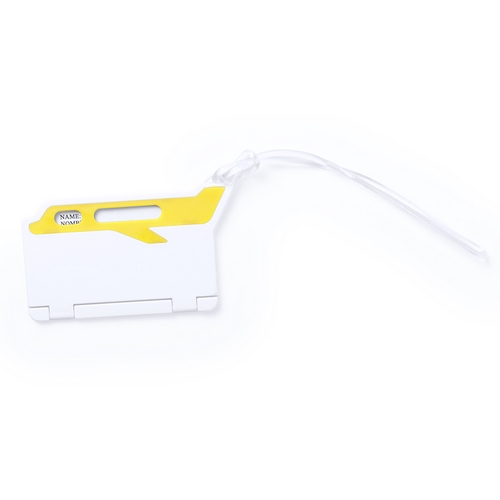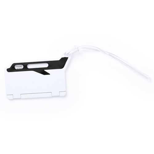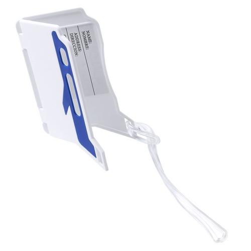 Original identificador de maletas de diseño de avión en resistente material de combinación bicolor. Con resistente cinta de acople y tarjeta de identificación en castellano e inglés.