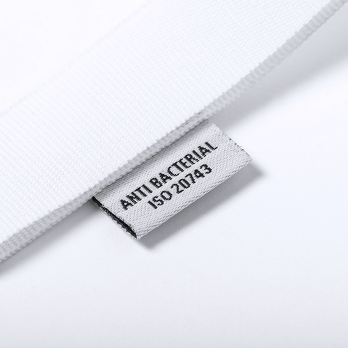 Lanyard antibacteriano en poliéster de color blanco con mosquetón metálico. Los productos con tratamientos antibacterianos son capaces de reducir drásticamente las cargas bacterianas presentes en las superficies de los materiales, gracias a la incorporación de agentes microbianos permanentes estáticos, con alta efectividad para inhibir y prevenir la contaminación bacteriana. Artículo de acuerdo al estándar ISO 20743, que determina la actividad antibacteriana en productos textiles, lo que permite conocer la efectividad de inhibición microbiana que tienen los aditivos sobre los objetos tratados mediante una evaluación cuantitativa. Distintivo antibacteriano en etiqueta.