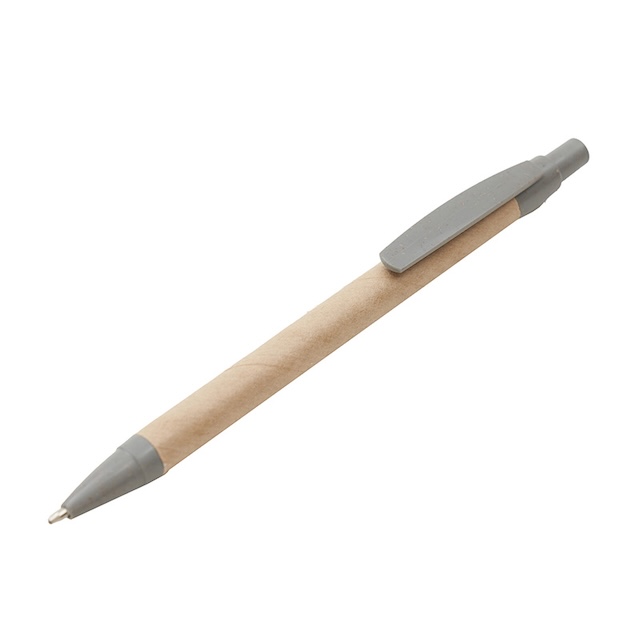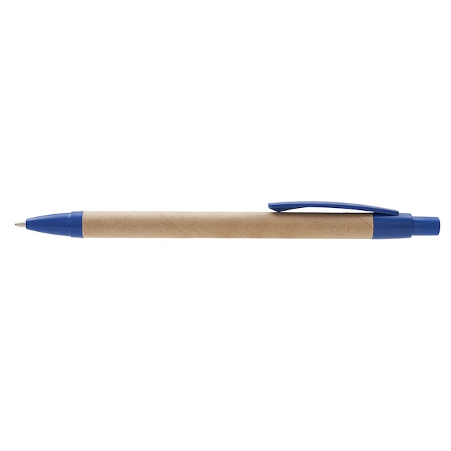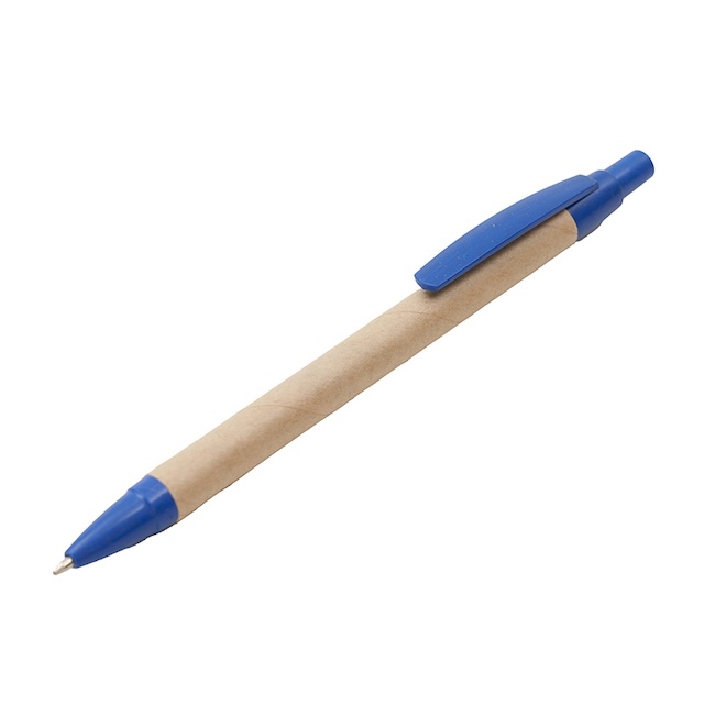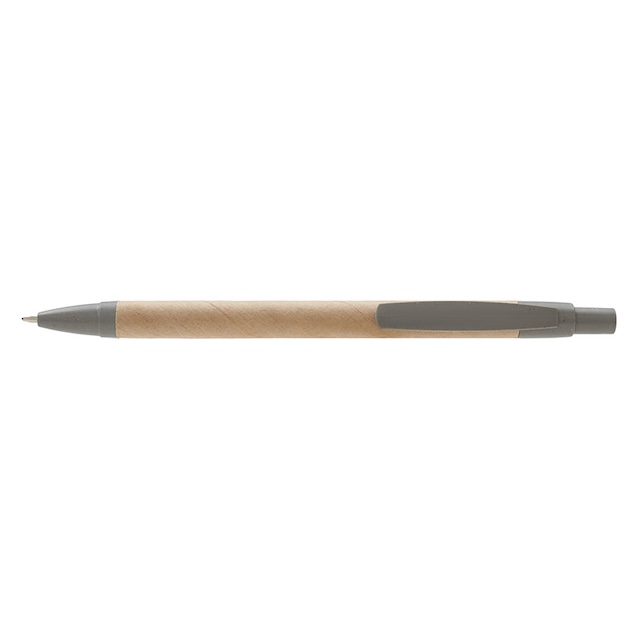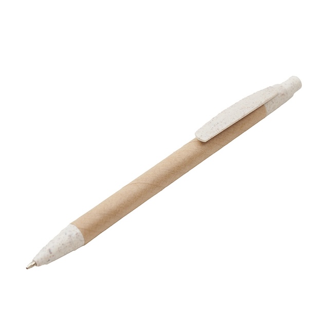 Lápiz realizado en fibra de trigo y celulosa, con clip de apertura retráctil . Tinta azul . Medidas: 14,6 cm. Reuseme