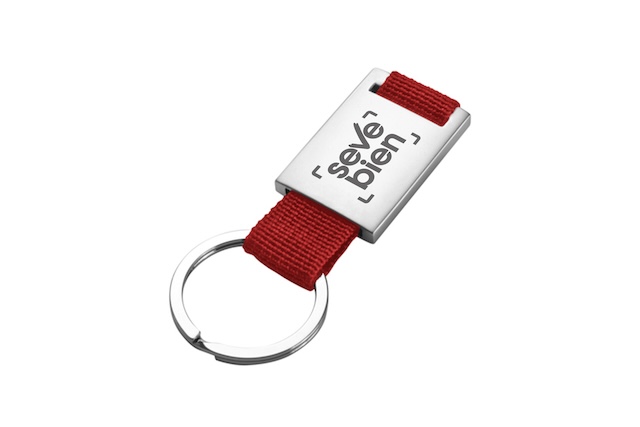 8 x 2,8 x 0,5 cm. Metal mate y tela. Con detalle de tela en color. Presentación en caja de regalo.