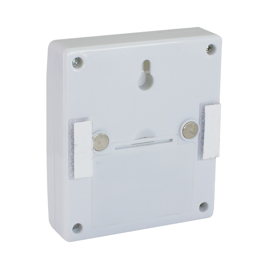 Luz LED de emergencia modelo “interruptor”. Contiene 2 bandas de velcro con autoadhesivo, para instalar en cualquier pieza. Incluye círculo “glow in the dark” para visualización de encendido. Usa 3 pilas AAA (no incluidas).