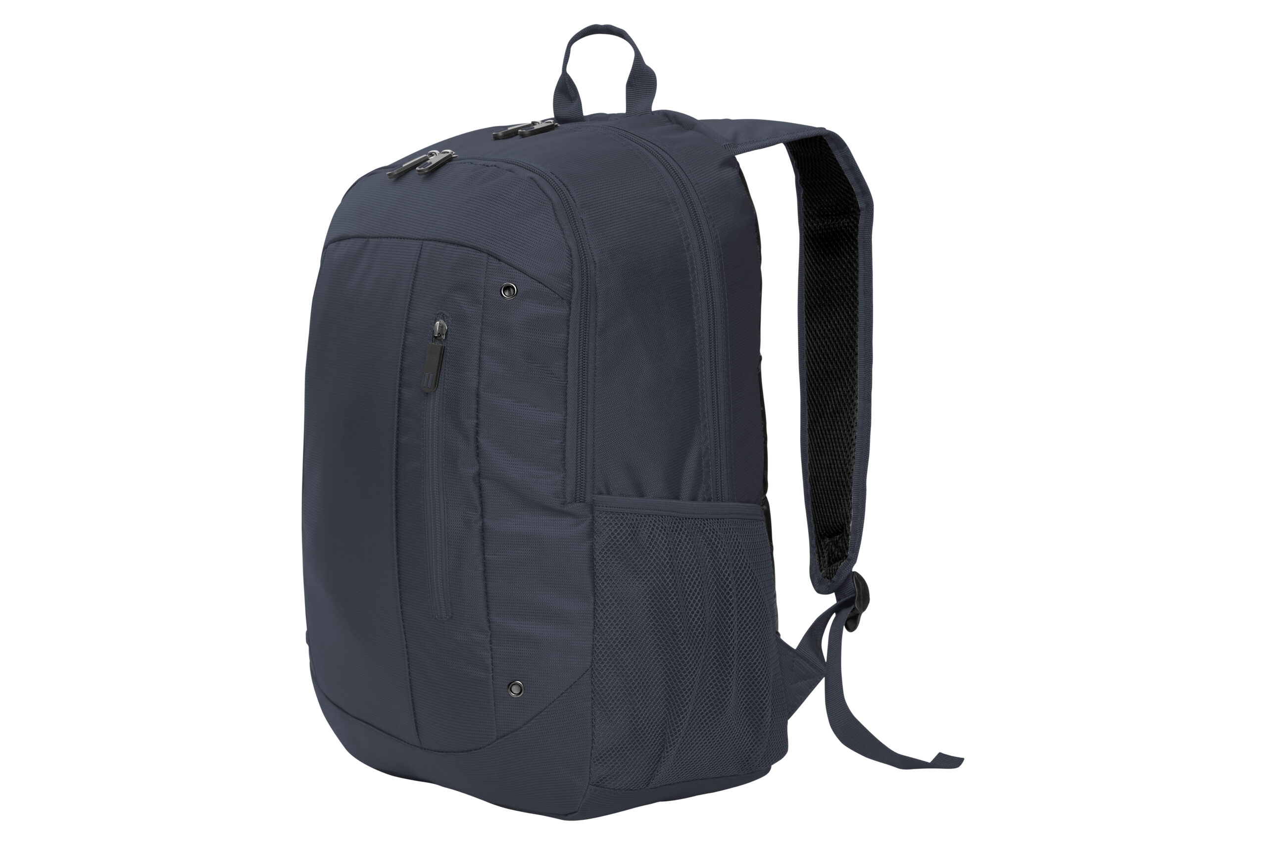 47 x 32 x 17 cm. Capacidad 25 litros aprox. Jacquard Poliéster 420D. Mochila portanotebook. Dos compartimentos con cierre. Compartimento principal con división acolchada porta notebook de hasta 15” con bolsillo y el segundo con tres espacios contenedores. Bolsillo frontal con cierre en color y dos bolsillos de red laterales. Cierres metálicos con tiradores de goma con detalles de color. Correas regulables y espalda acolchadas.