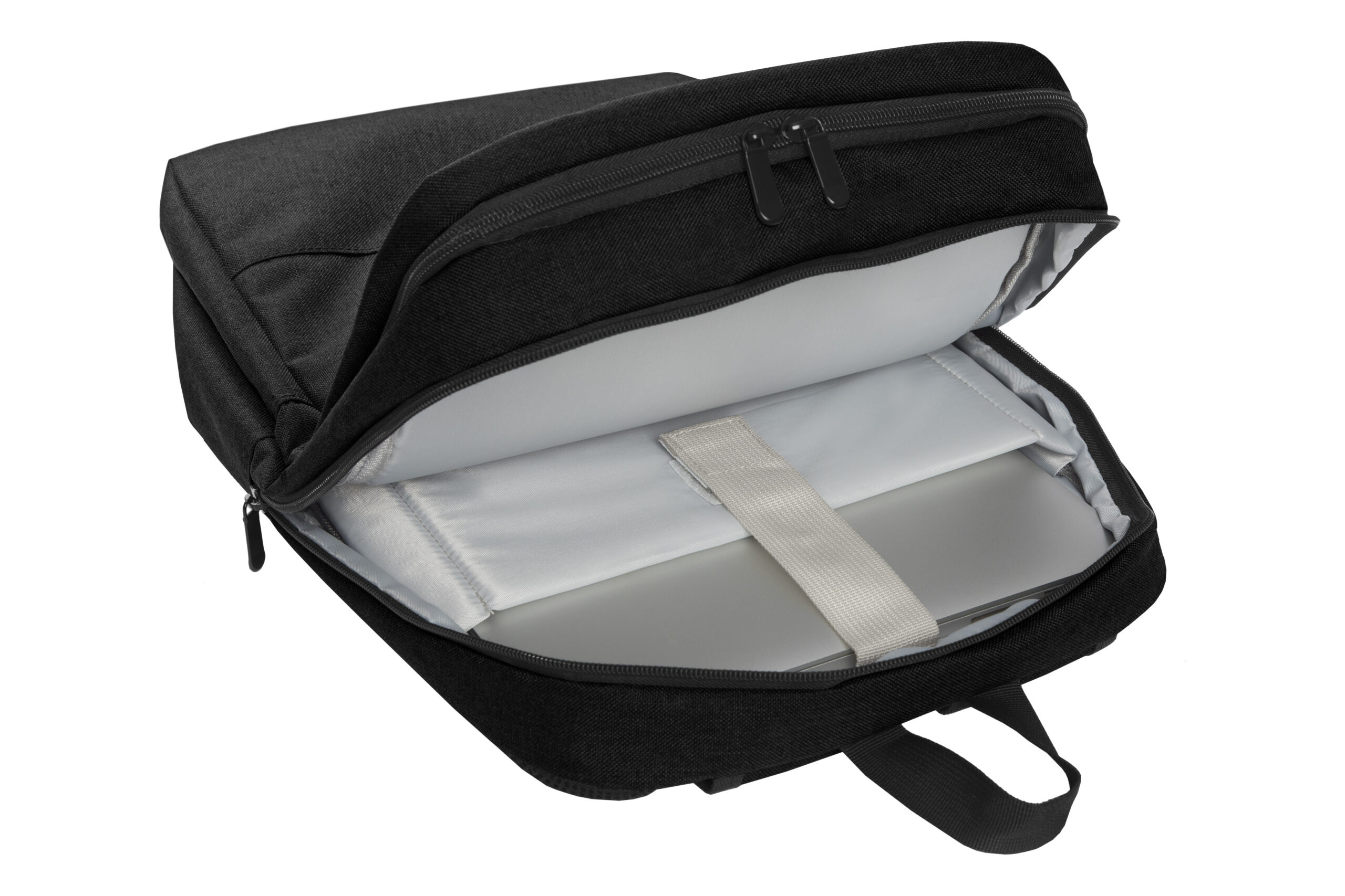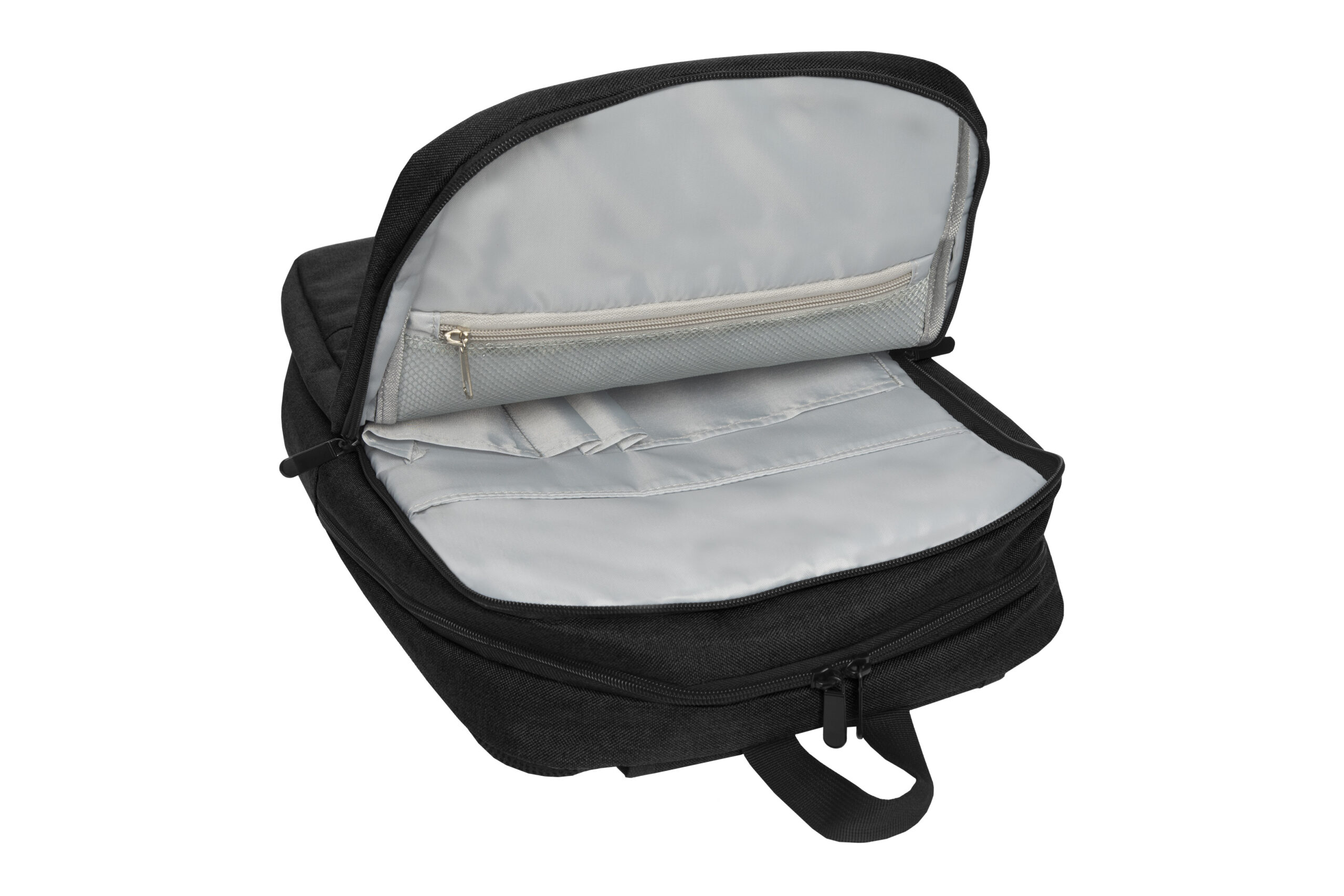 28 x 42 x 12 cm. Capacidad 14 litros aprox. Tela de yute – imitación. Poliéster 100%. Mochila portanotebook de hasta 16 pulgadas. Amplio bolsillo frontal con cierre lateral. Posee 2 compartimentos acolchados y forrados. El primero con un bolsillo de red con cierre, organizador con pequeños bolsillos, porta boligrafos y espacio para guardar una tablet. El segundo compartimento contiene bolsillo para notebook de hasta 15″. Correas ajustables y espalda acolchadas con tela de red que permite la ventilación. Tiradores de cierres metálicos.