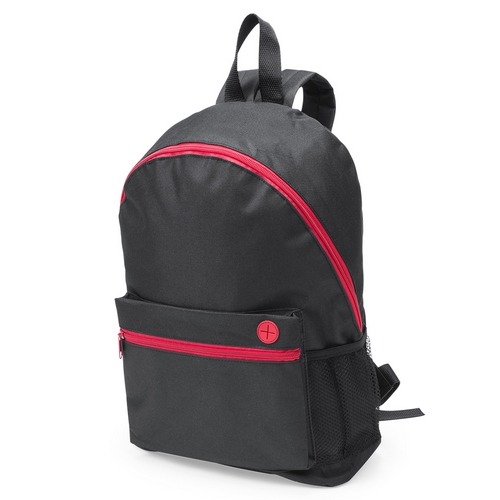 Mochila en resistente poliéster 600D de original diseño en color negro con accesorioss a juego en vivos colors. Con cierre de cremallera, salida para auriculares y bolsillo frontal. Con espalda acolchada y cintas de hombros ajustables con acolchado. Parte Trasera y Cintas Acolchadas