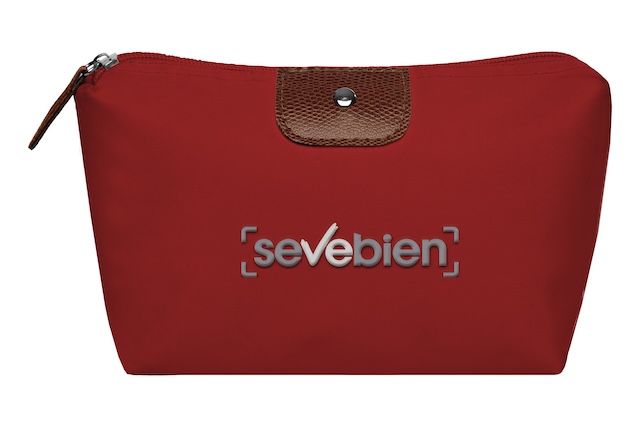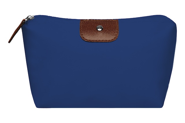 22 x 13 x 5,5 cm. Polyester. Necessaire con detalles en símil cuero y un botón metálico en el frente. Interior con forro. Tiradores de cierre de símil cuero.