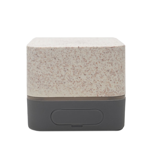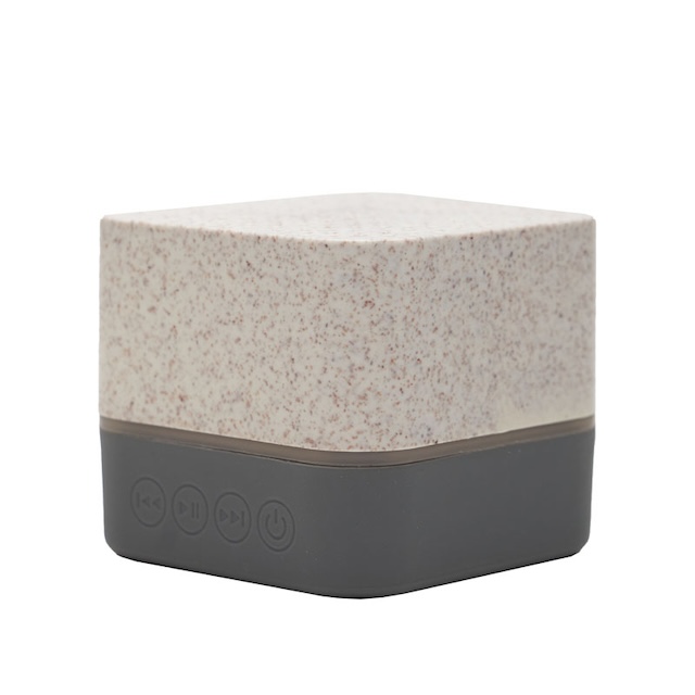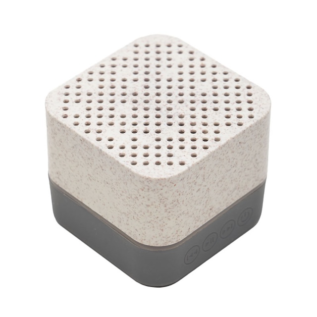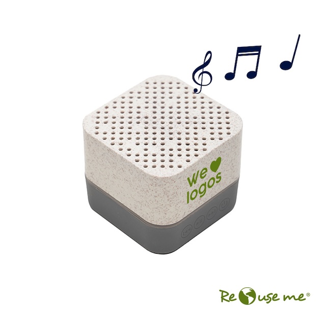 Parlante portátil con tecnología Bluetooth 5.0. Realizado en combinación de PP con Silicona y Wheat Straw, pasta de paja de trigo, un material sustentable que reduce el consumo de plásticos vírgenes. Su peso es de 116gr, y entre sus características técnicas encontramos: Bateria de 300mAh. Poder del parlante:3W * 1. Frecuencia: 200Hz-20KHz. Conexión:5V / 500mA. Distancia de alcance: 10 Metros. Medidas: 5,85 x 5,85 x 5,1 cm. Re use me. LOGO24: Producto disponible para el servicio de logueo en 24 horas respetando unidades mínimas de logueo y 56 unidades máximas. Consultar términos y condiciones del servicio. ReUseMe. Incluye Gift Box confeccionada en cartulina Kraft.