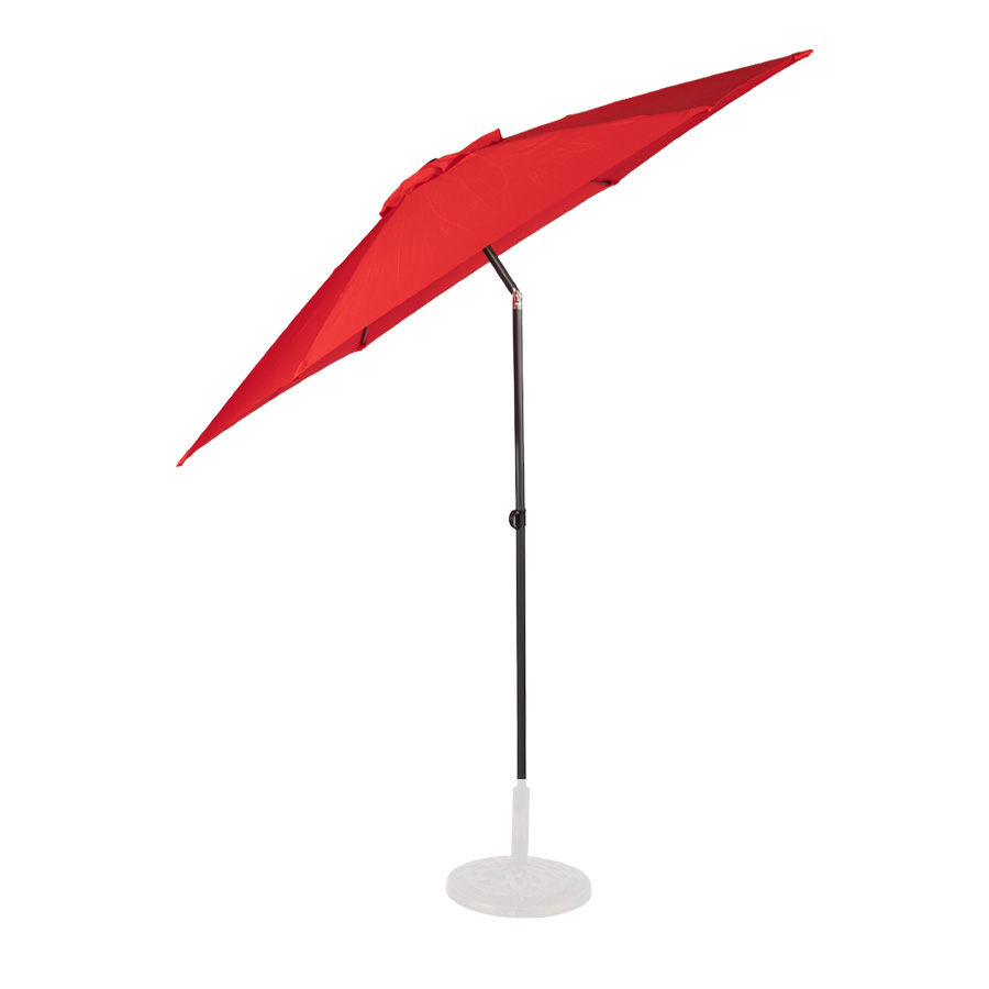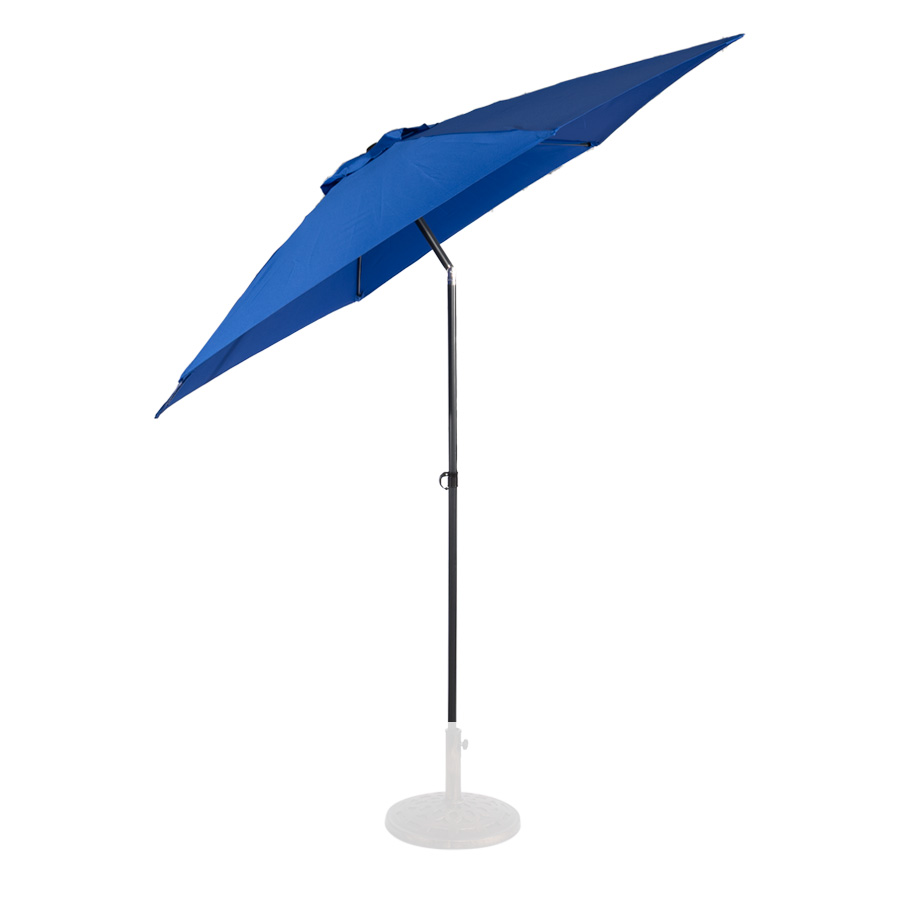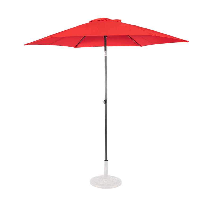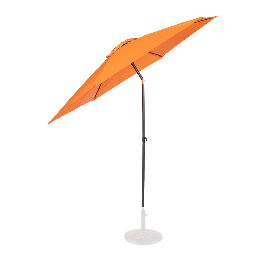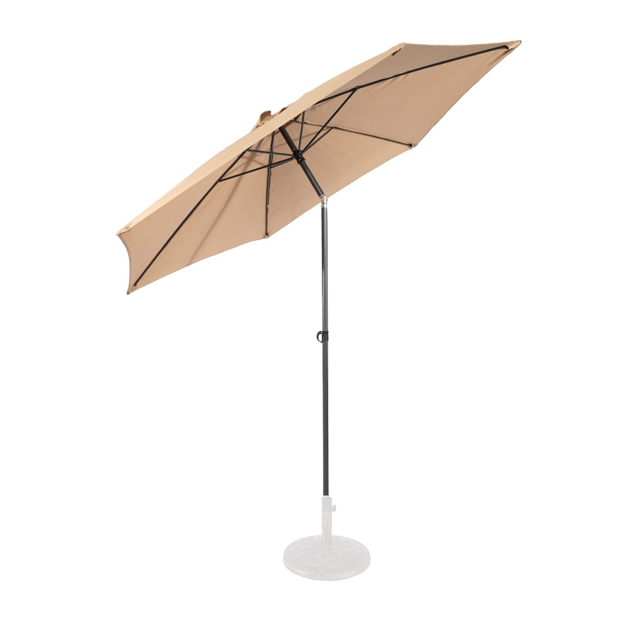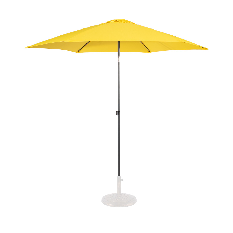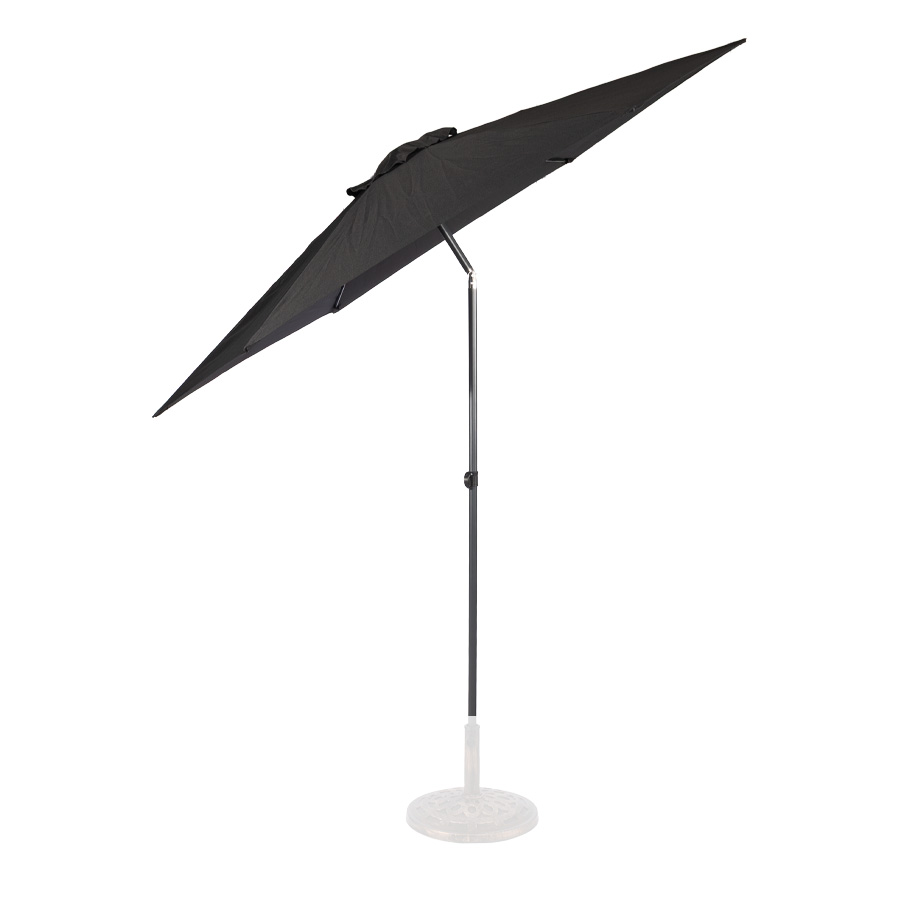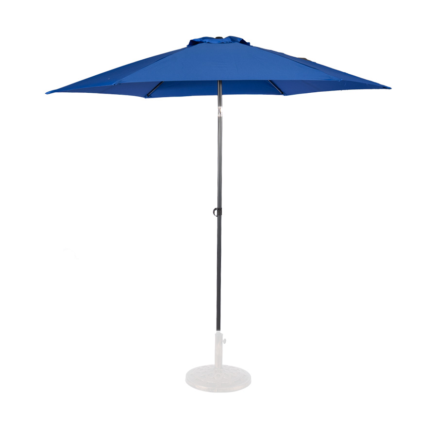 Quitasol redondo modelo “RAVELLO” de 2.5m de diámetro, con 6 cascos de lona Poliéster UV impermeable de 160g. Estructura asta central de 3.2cm diámetro x 1.6mm de espesor + 6 varas de 6x10mm, ambos Acero con pintura electrostática color negro, altura 2.3m, con sencillo sistema de apertura manual. Incluye codo giratorio de 45°. NO INCLUYE BASE.