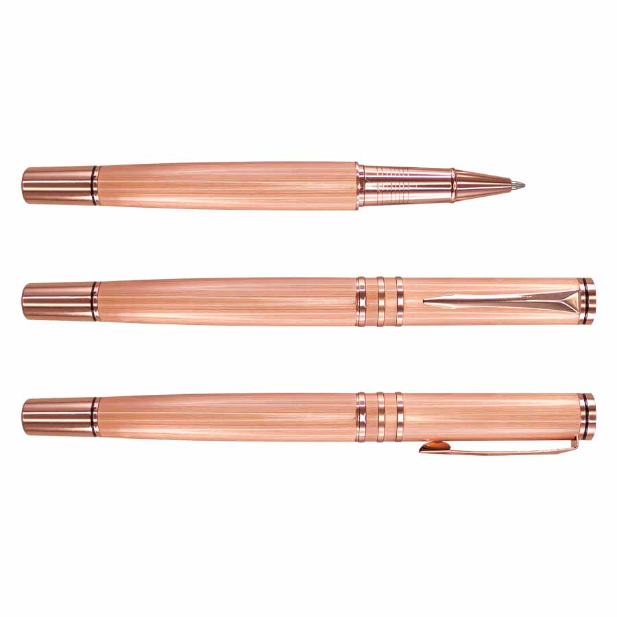 Roller Pen Metálico Encobrizado, con terminales color cobre. Escritura Azul.