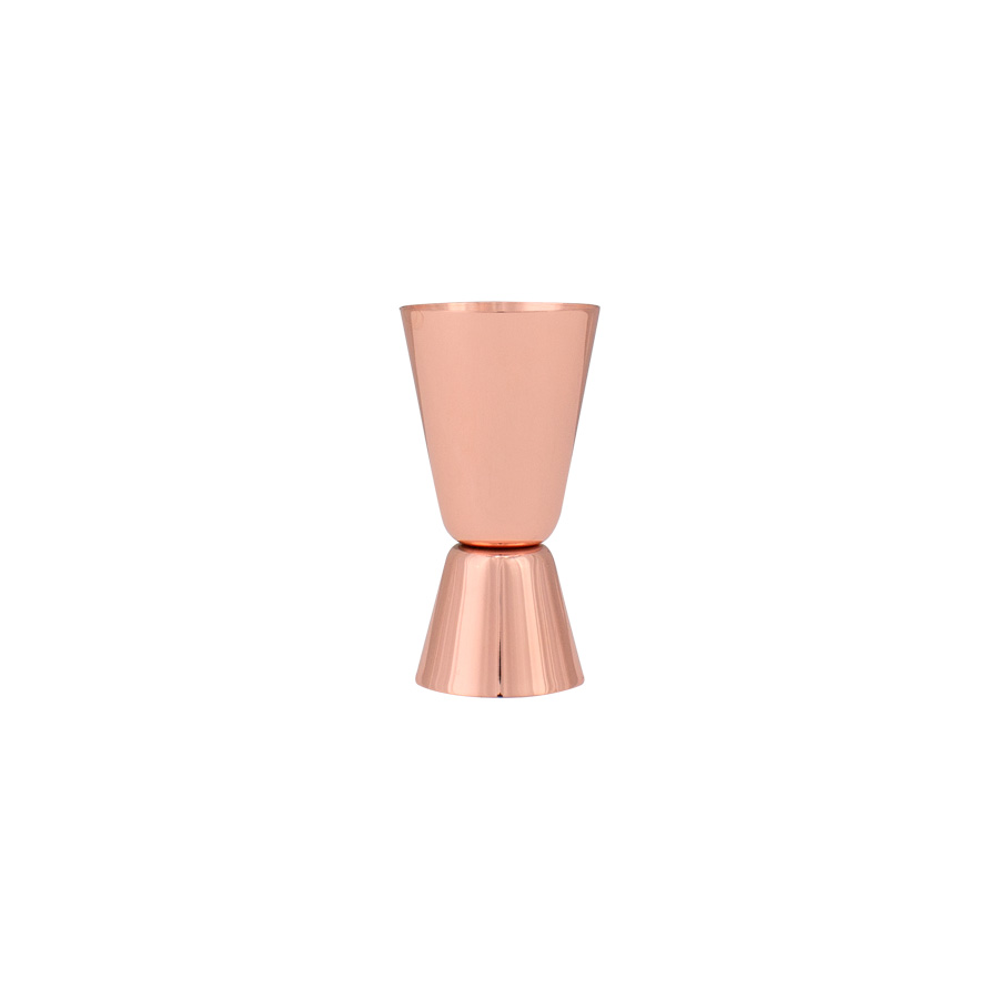 Fino regalo set de cóctel 5-en-1 de Acero inoxidale 304 SS, en acabado color cobre, incluye: coctelera 700ml con tapa 22cm, vaso dosificador doble (jugger) 8.3cm, tenazas para hielo 16cm, cuchara-tenedor revolvedor 23cm, colador/batidor 19cm. Producto BPA FREE, para el contacto con líquidos y alimentos. Capacidad coctelera 700ml. Presentación en caja de regalo de cartón laminado negro.