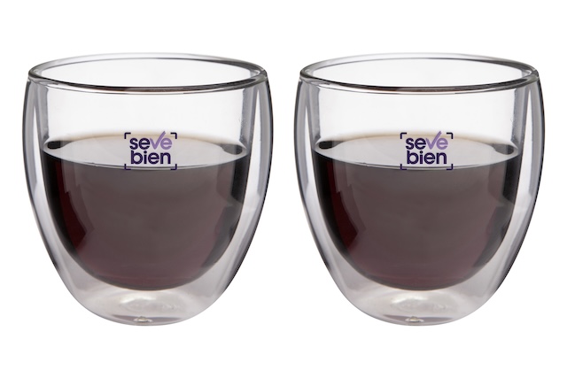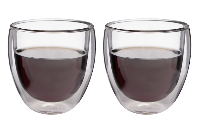 Ø 8 x 8 cm. Capacidad 220 ml cada vaso. Vidrio. Set de dos vasos doble pared. Apto para bebidas frías y calientes. Presentación en caja de regalo.