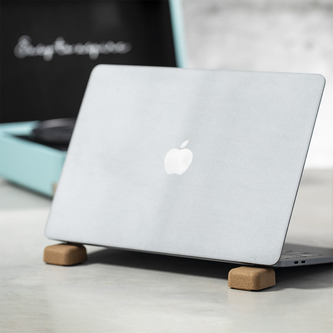 Compacto soporte de línea nature para ordenador portátil. Fabricado en corcho, para así fomentar la utilización de materias primas naturales y reducir las emisiones de contaminantes. Magnético y antideslizante, presentado en atractiva caja individual de diseño eco. Magnético