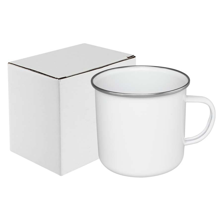 Tazón grande de acero enlozado “Enamel” de 700cc. con cobertura para Sublimación. Único con borde de Acero Inoxidable, que entrega higiene y protección al contacto con tu boca.