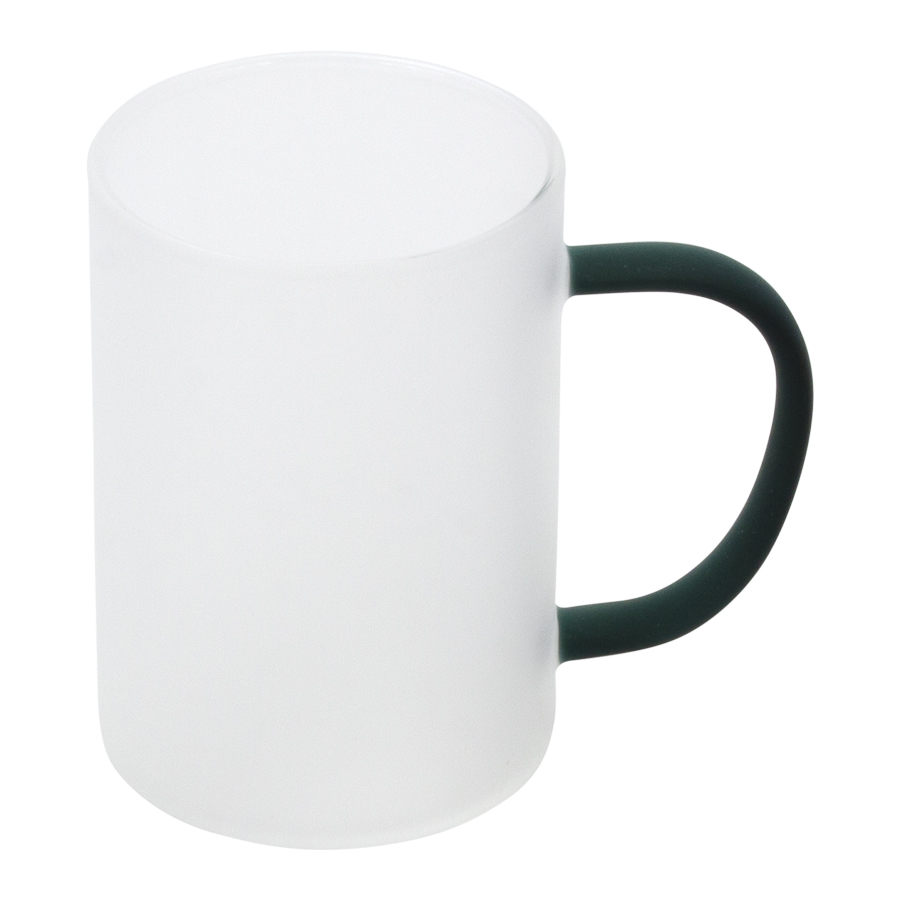 Tazón de Vidrio Empavonado para Sublimación, para líquidos fríos, con asa de color sólido. Capacidad 330ml. Presentación bolsa plástica empavonada + caja de cartón blanco. Calidad Premium ORCA.