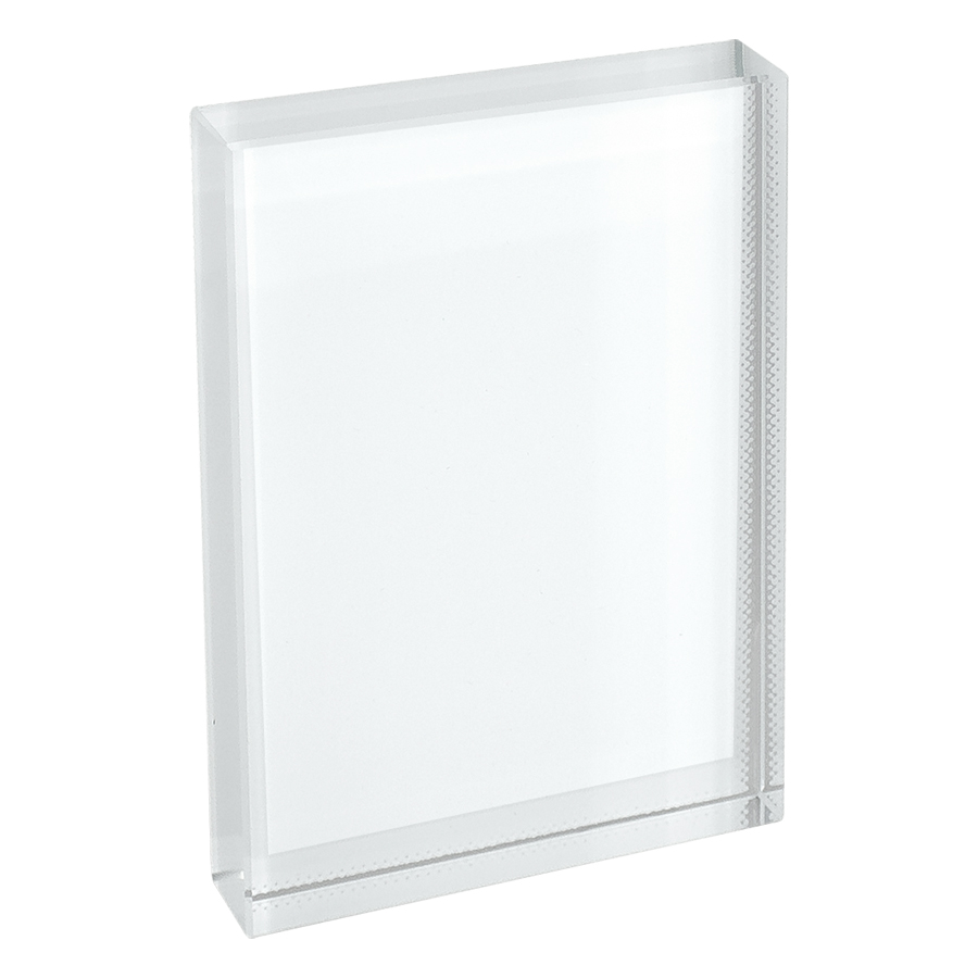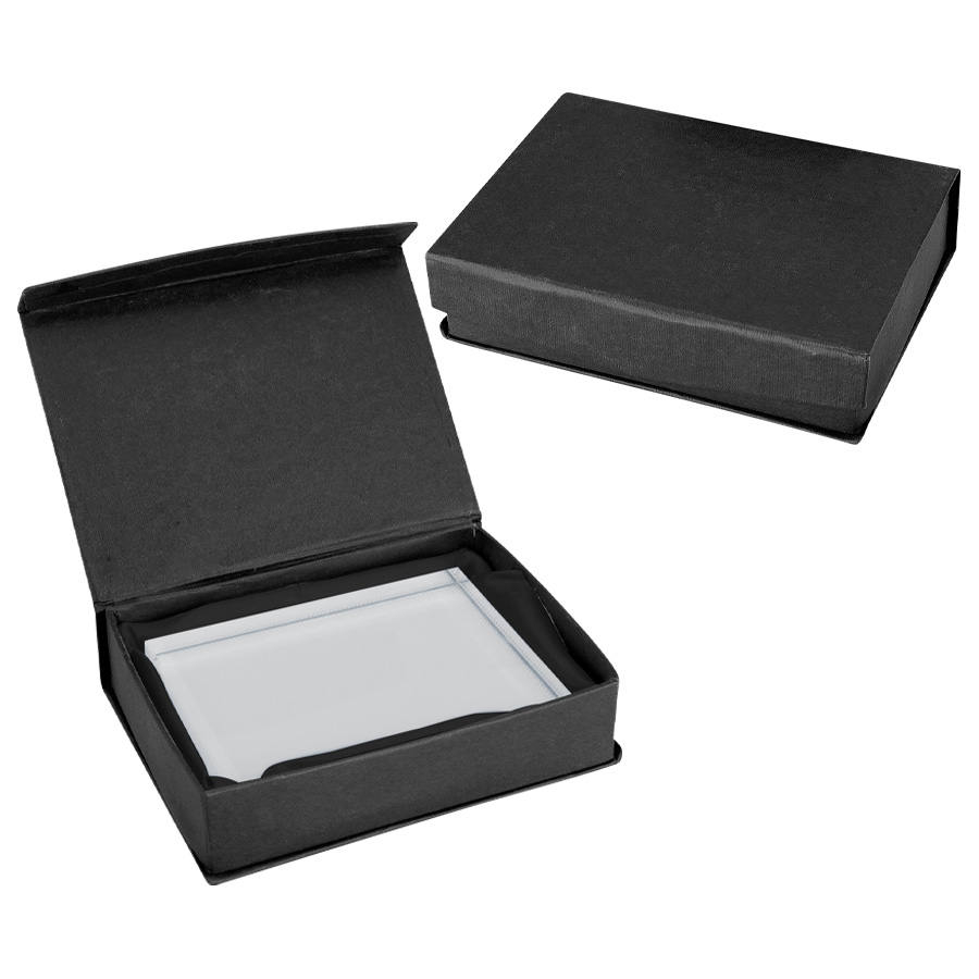 Trofeo rectangular de Cristal sólido para Sublimación. Presentación en caja de cartón negro con cuna color negro.