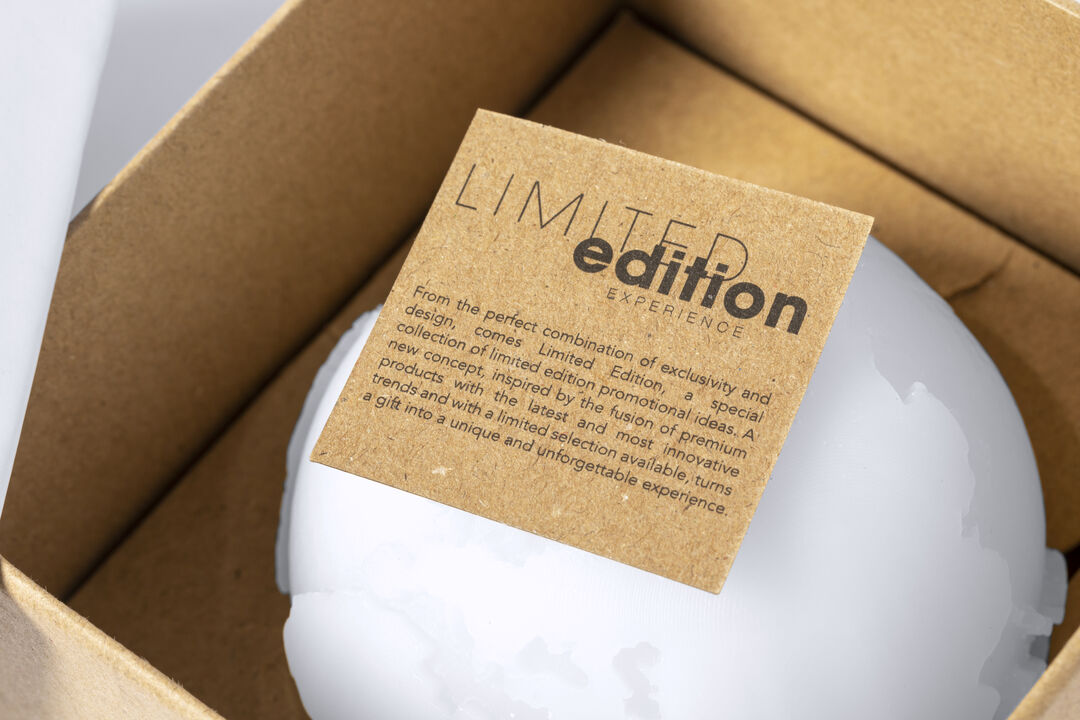 Vela aromática Limited Edition. Envolverse en la sensación de encedender una vela y trasladarse a través de su aroma a vainilla y diseño de bola del mundo. Un regalo ideal para crear ambientes de calma, despertar infinidad de sentimientos y sensaciones o formar parte de la decoración. Incluye base de soporte en bambú natural. De la perfecta combinación entre exclusividad y diseño, nace Limited Edition, una colección especial de ideas promocionales de edidición limitada. Un nuevo concepto, inspirado en la fusión de artículos premium con las últimas y más novedosas tendencias y que cuenta con una seleción limitada de unidades, convirtiendo así un regalo en una experiencia única e inolvidable. Exclusivo estuche de presentación Limited Edition,’, con diseño protegido por derechos de propiedad industrial. Incluida tarjeta con descripción de Limited Edition en cartón reciclado. Aroma Vainilla