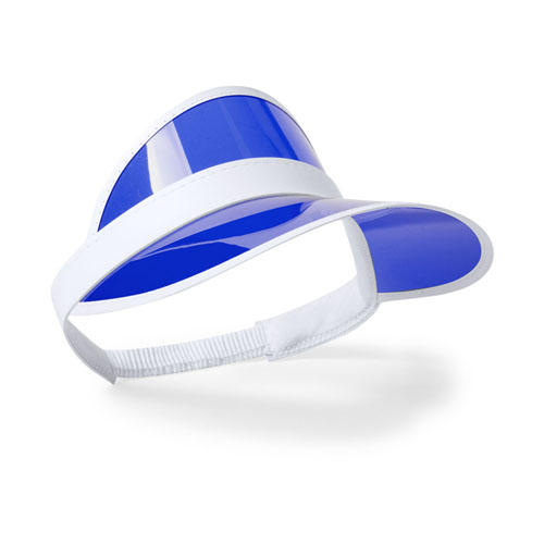 Original visera de PVC con protección UV. Acabada en colores transparentes en combinación con detalles de color blanco. Con cinta elástica ajustable y disponible en variada combinación de colores. Protección UV